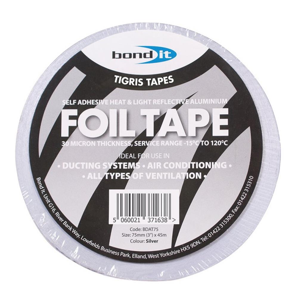 The Bond Aluminium Foil Tape is exceptional for all types of duct, air, and ventilation systems. It offers excellent high-tack, adhering to the surface seamlessly with excellent adhesive performance regardless of the system's temperature. It provides outstanding moisture resistance and is perfect for use between foil-faced insulation panels in roof and wall applications.