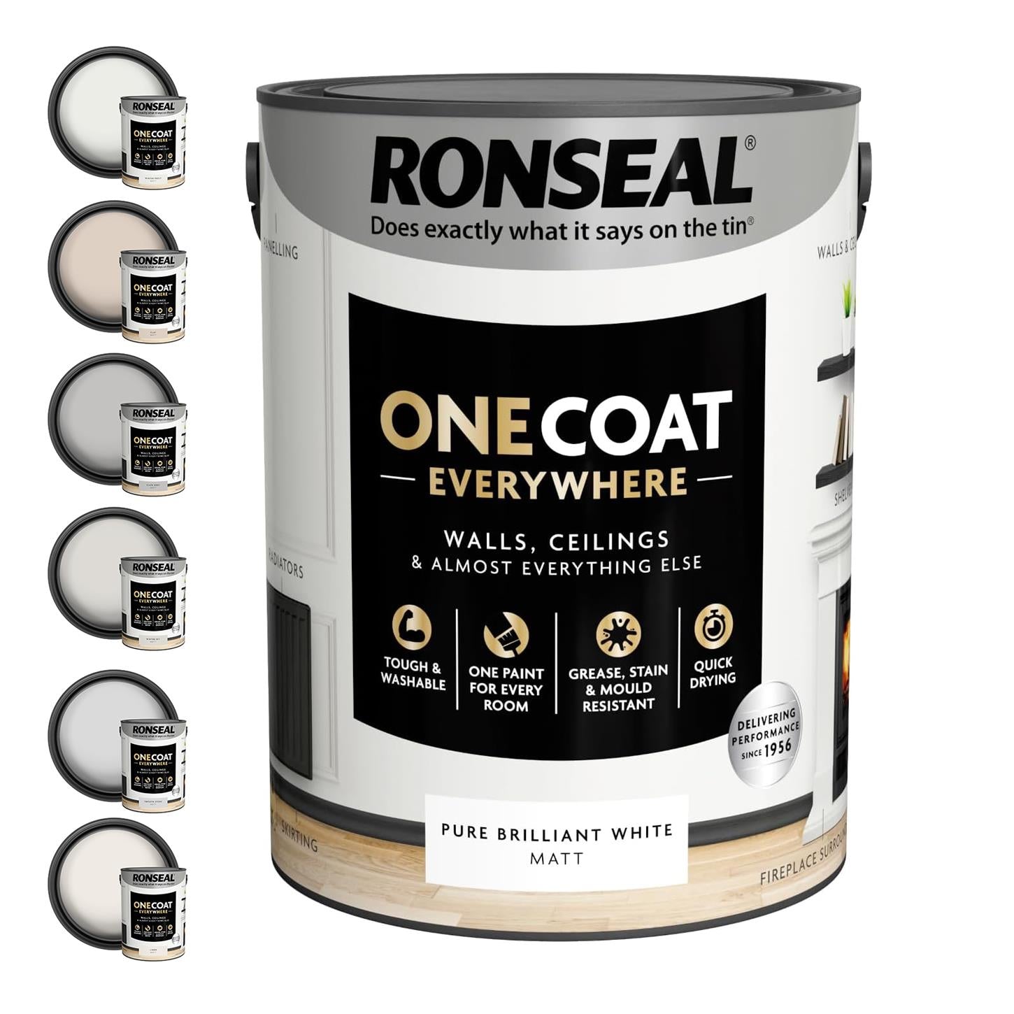 Ronseal’s One Coat Everywhere makes decorating your whole home easier and quicker. It’ll give rich colour and tough protection to walls, ceilings and pretty much anything else you want to paint. It’s stain resistant and washable, ready to stand up to the challenges of everyday life.