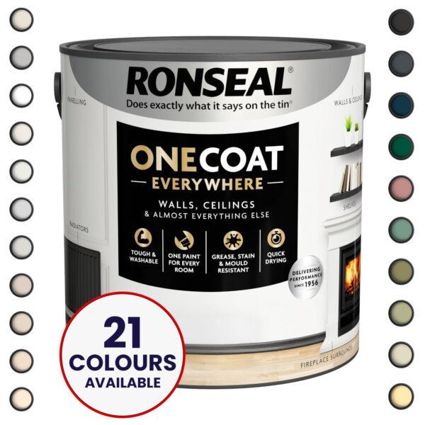 Ronseal One Coat Everywhere Quick Dry Matt Paint 2.5L makes decorating your whole home easier and quicker. It’ll give rich colour and tough protection to walls, ceilings and pretty much anything else you want to paint. It’s stain resistant and washable, ready to stand up to the challenges of everyday life.